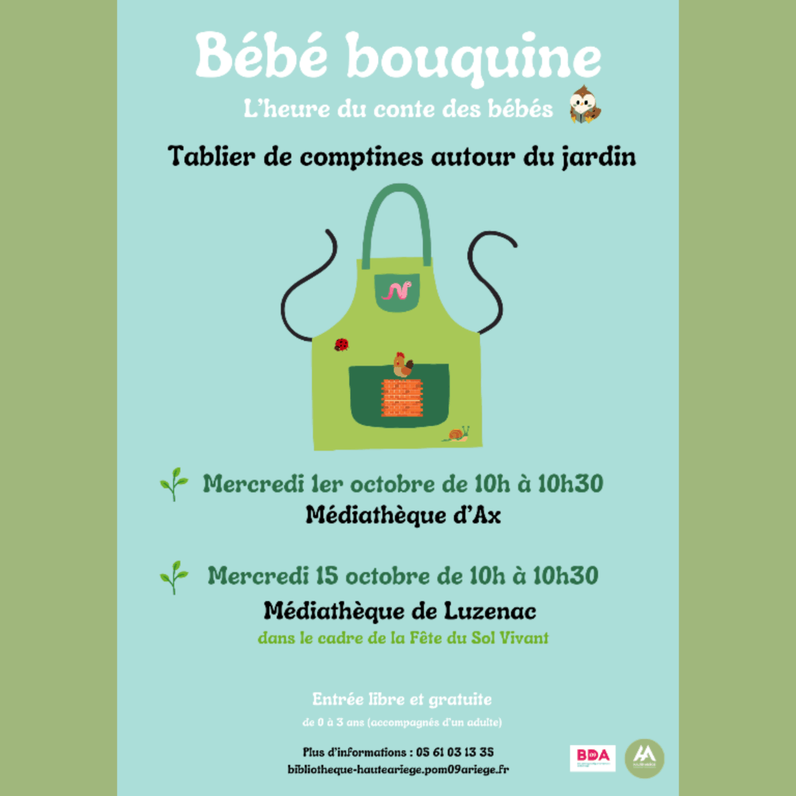 L'heure du conte des bébés, ce mois-ci : "Tablier de comptines autour du jardin"