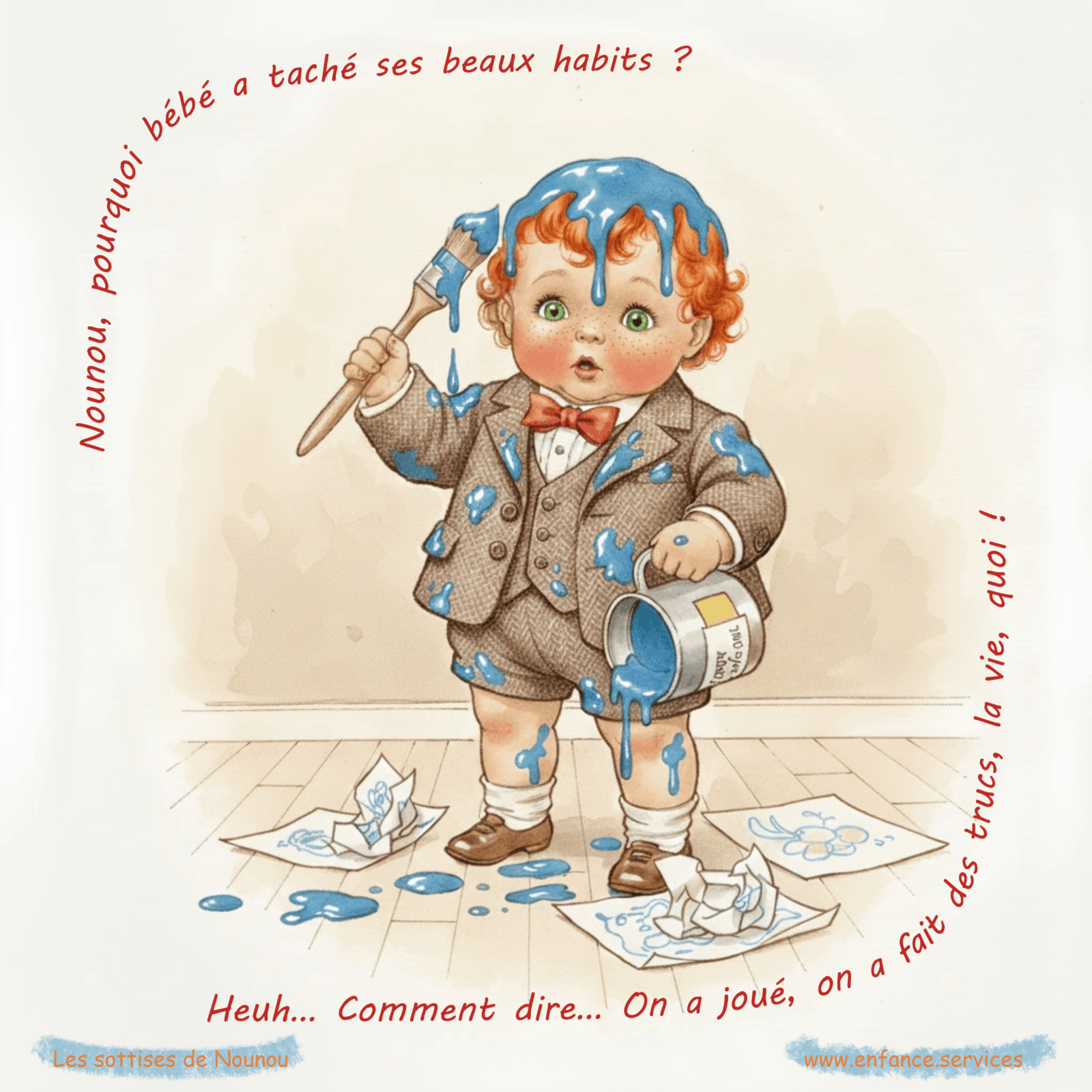 - "Bébé est tout taché ! C'est la vie..." © by MaM / IA assisté - Si vous copiez et diffusez, prière de laisser la mention de l'adresse de notre site bien visible - Merci